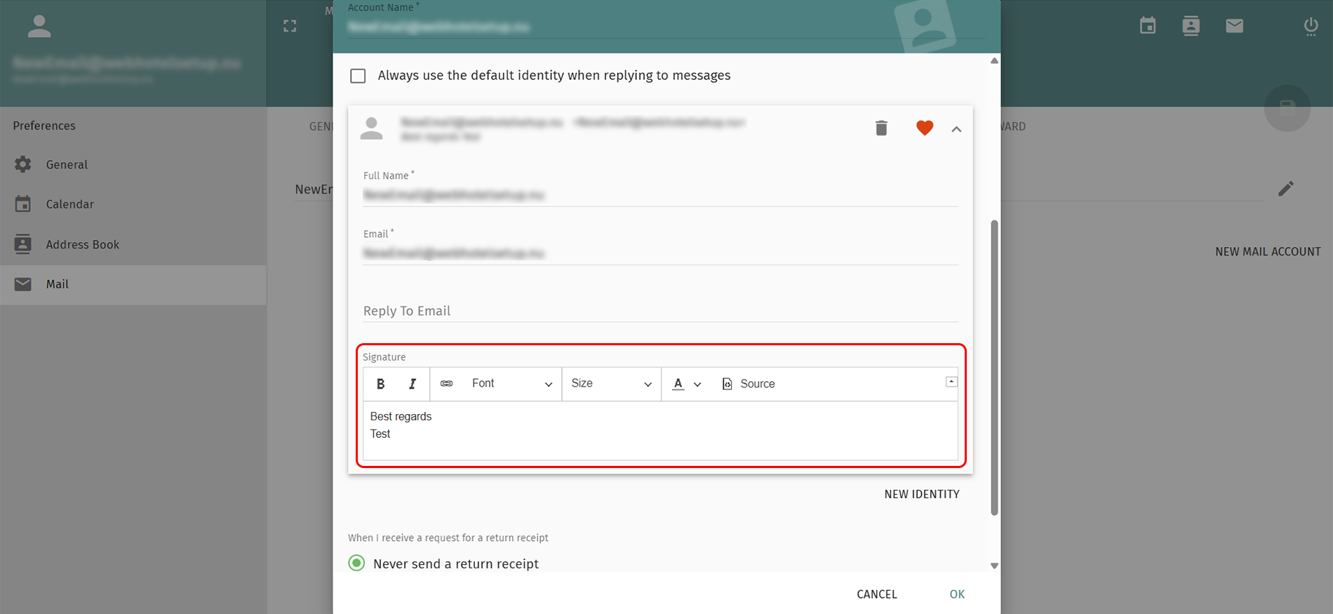Webmail account settings - Create an email signatur in SOGo webmail.